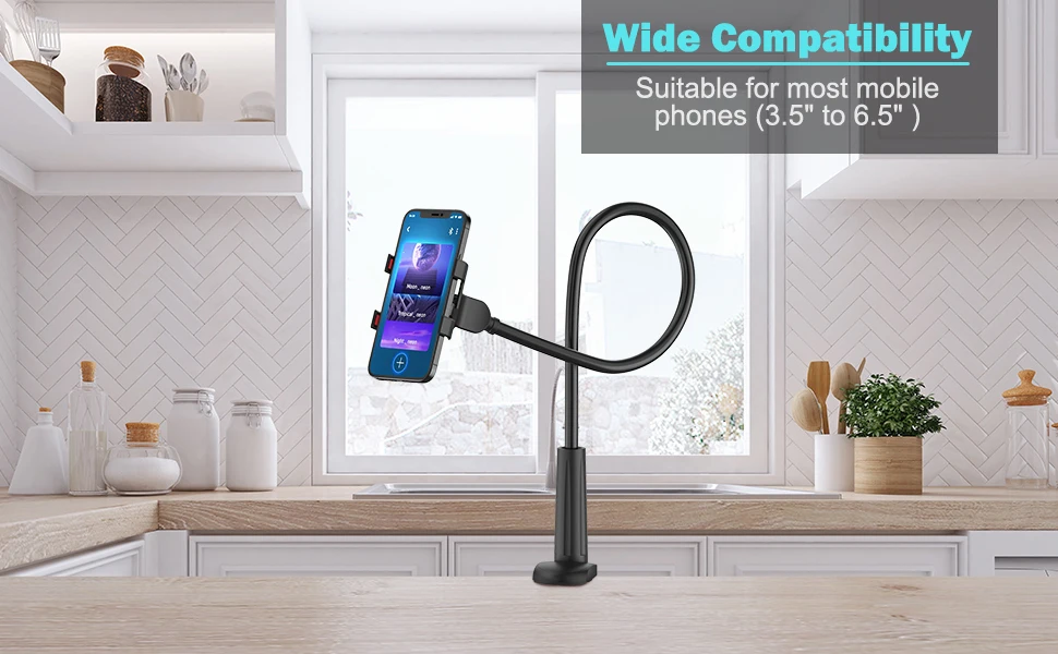 The gooseneck clip phone holder is suitable for bed tables, phone holders, flexible and lazy long arm holders, headboards, and hands-free overhead video recording - this phone holder holder clip has anti slip pads to protect your device from scratches and slipping.